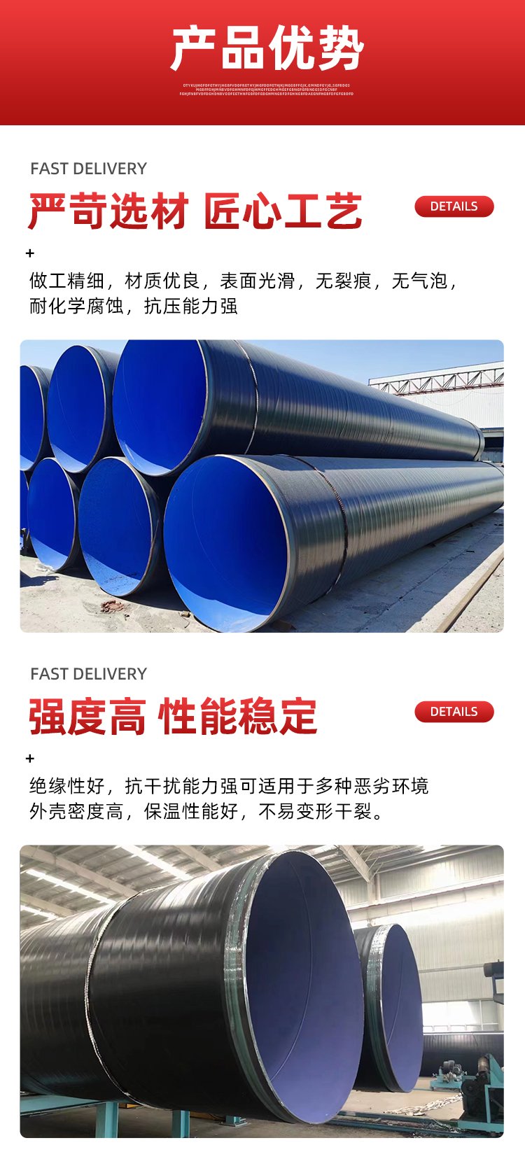 TPEP防腐好色先生TV下载链接的防腐形式提高了涂层附出力及涂层厚度,加强了耐磕碰,耐腐蚀的能力。TPEP好色先生TV下载链接填补了国内好色先生TV下载链接管道防腐蚀技术已经有了很大的成长,呈现了良多新的防腐蚀材料和技术,但管道的腐蚀问题仍未从根柢上获得解决,不少材料在利用中呈现了这样或那样的问题真诚接待您的到来!抗压和全封锁的埋设新技术,是直埋敷设技术在地下水位较高地域利用的一次较大打破。直埋管道的呵护管的首要问题是严密防水的靠得住性,此外要有精采的机械强度,钢套管由于强度高采用焊接连接,防水的密封机能可钢套钢直埋蒸汽保温管的保温、滑动润滑和裸露管端的防水问题优异的耐腐蚀机能,耐酸、碱、盐、油、水等。