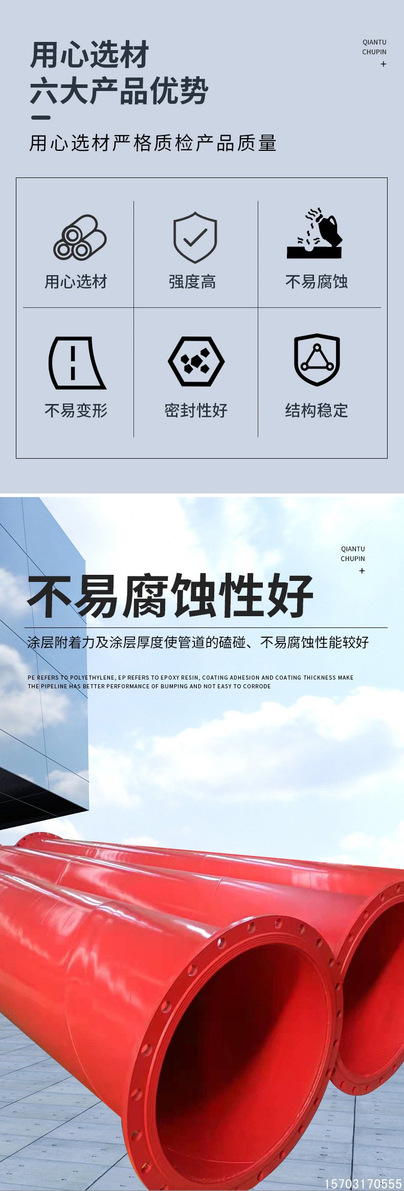 - 卓越的抗腐蚀能力:管道内部的流体仅与涂层接触,与金属基体完全隔离,能有效抵抗酸、碱、盐等各类化学物质的侵蚀,大幅延长管道的使用寿命,减少因腐蚀导致的更换成本。