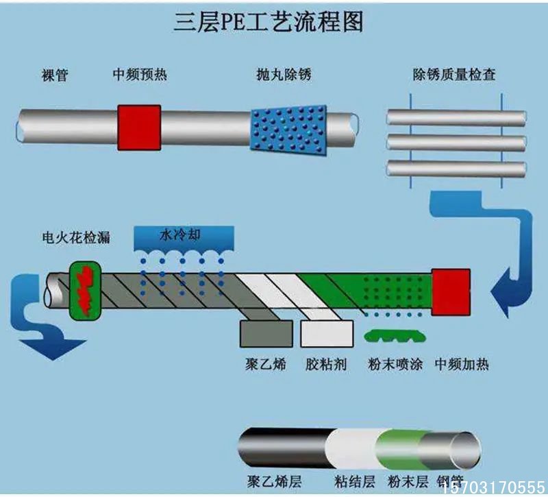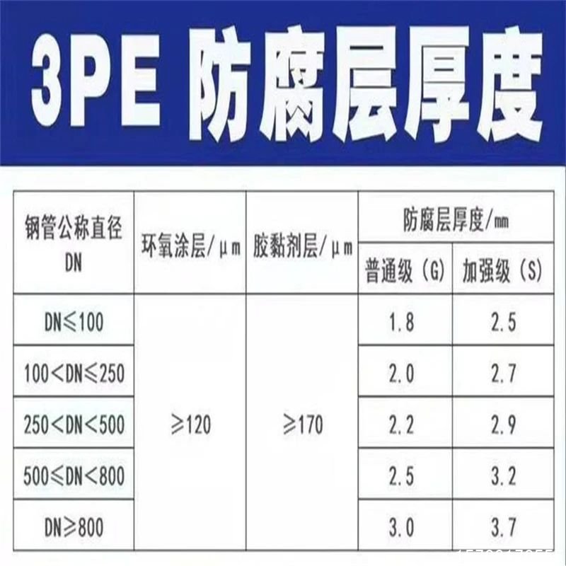 - 第三层聚乙烯:厚度在 2.2 - 4.2mm 之间,这一层提供了强大的机械保护和防腐蚀功能 。聚乙烯属于热塑性物质,柔性好,耐磕碰,能有效抵御土壤中的酸碱腐蚀、微生物侵蚀以及施工过程中的机械损伤 。
