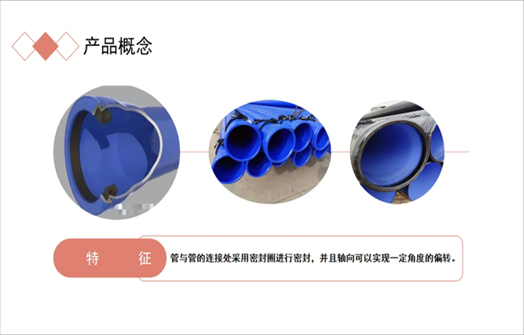 - 密封性可靠:橡胶密封圈在承插口的挤压下形成紧密密封,能有效防止介质泄漏,且具有一定的弹性补偿能力,可适应轻微的地基沉降或管道伸缩。
